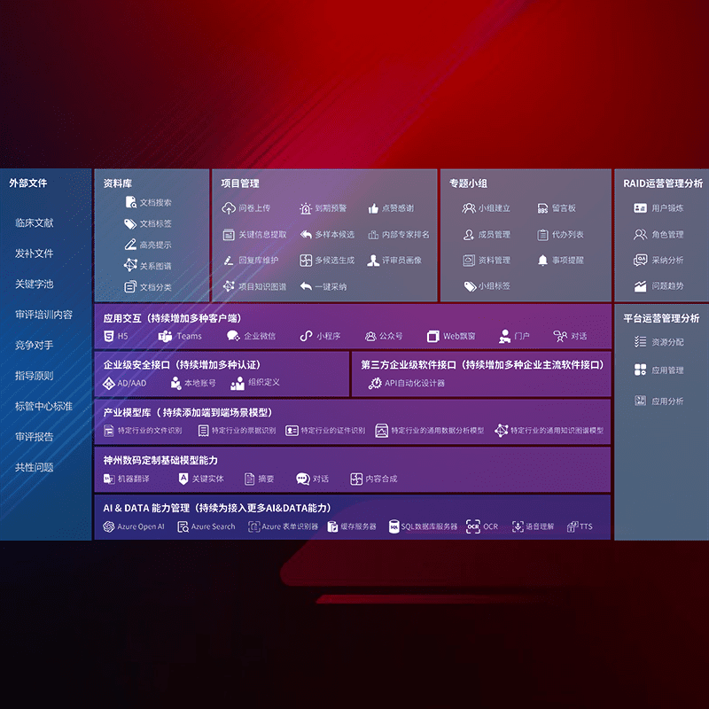 医疗器械产品上市前,,,要熟悉严格与繁复评审标准,,,,整理分析监管机构指导文件中的海量信息。。。。企业急需一个智能化解决方案,,,,提升知识管理效率,,提高评审通过率,,,,以提升其市场竞争力。。。